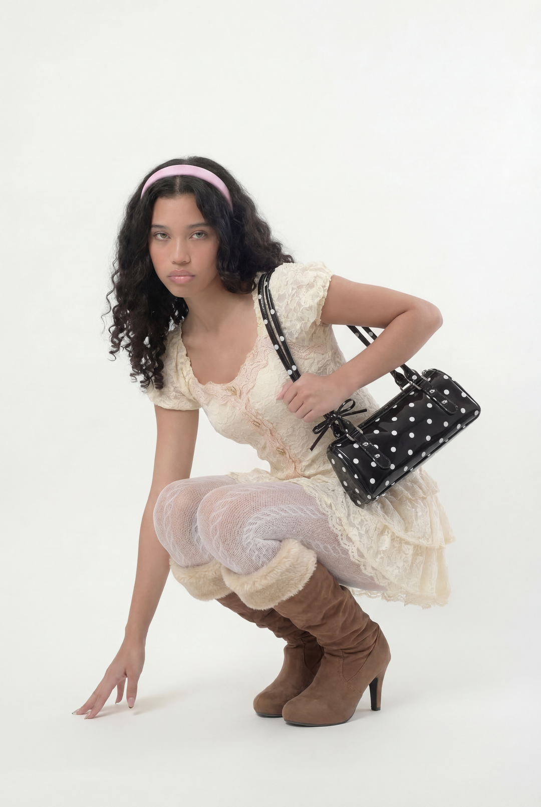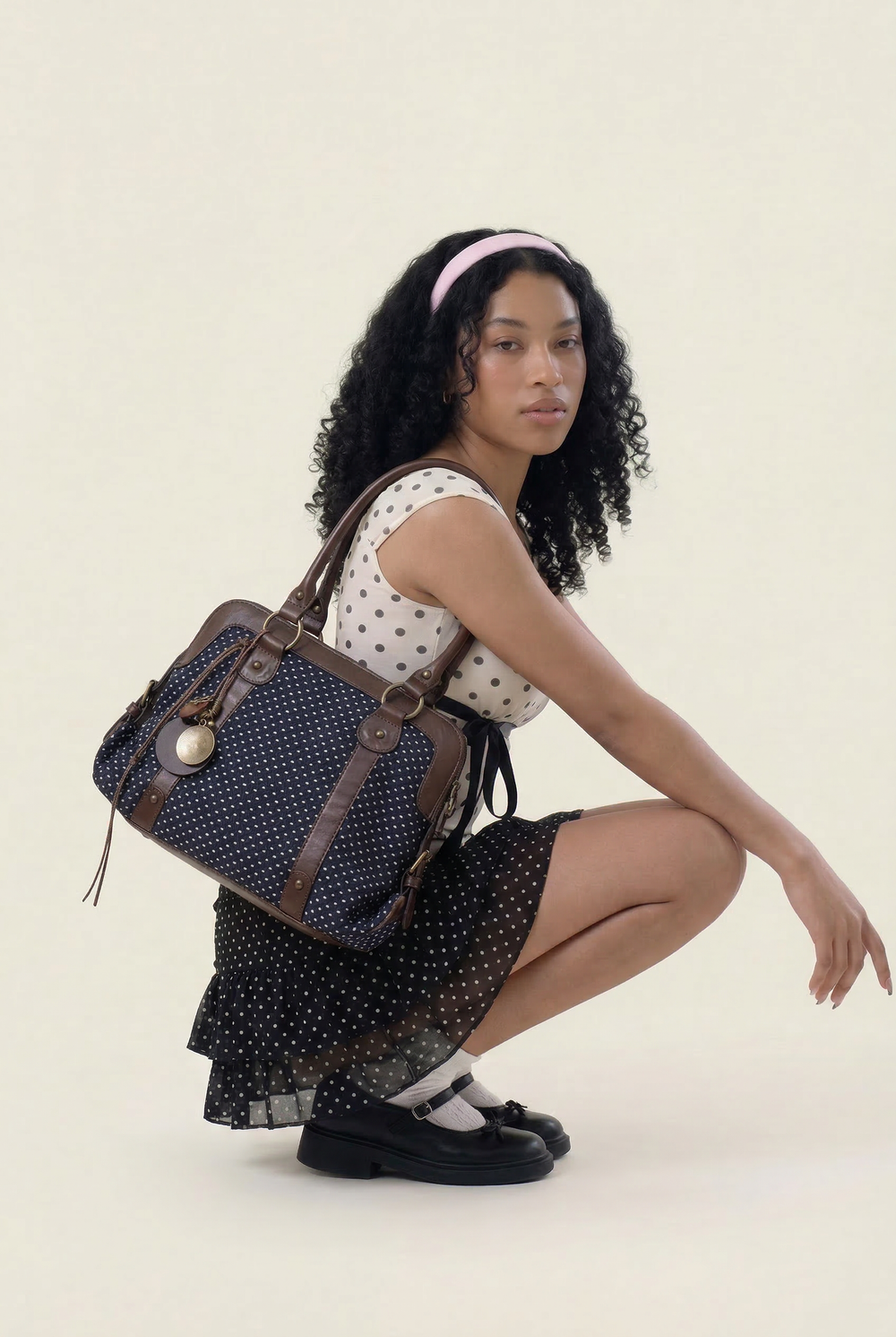 Retro Polka Dot Bow-Wing Shoulder Bag