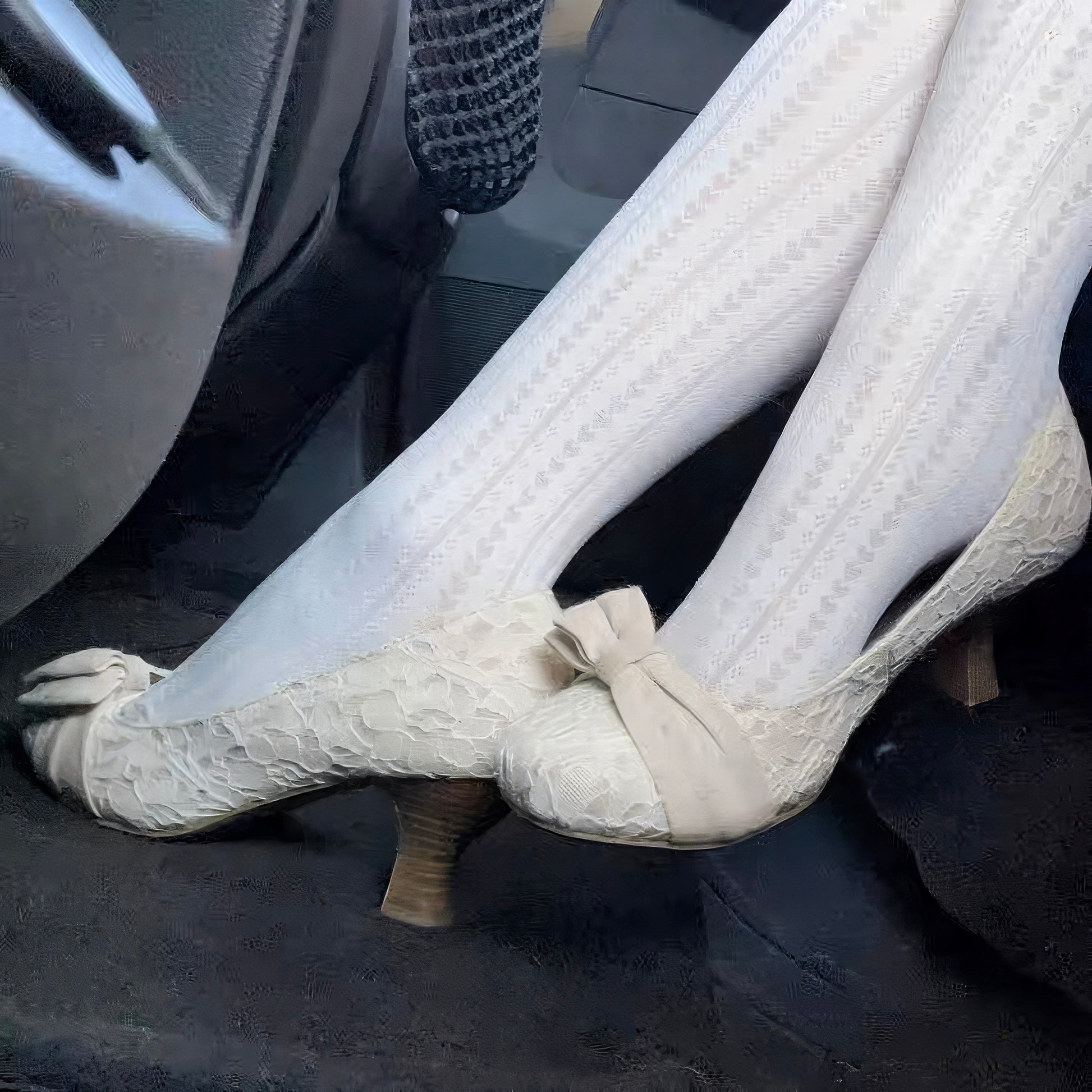The Celeste Lace Bow Heels exude soft romantic charm with every step. Wrapped in delicate ivory lace and adorned with a graceful bow at the toe, these heels capture a timeless, feminine allure. The mid-height wooden heel adds a vintage touch, blending comfort with sophistication. Perfect for afternoon dates, dreamy ensembles, or elegant gatherings, the Celeste Lace Bow Heels embody the essence of classic coquette elegance.